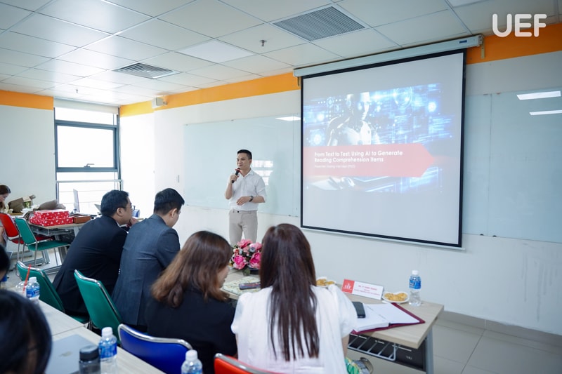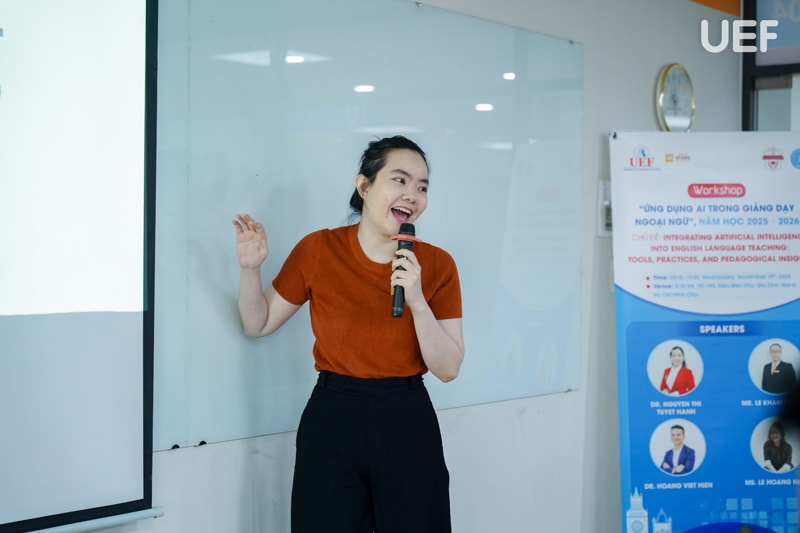 Trong bối cảnh công nghệ trí tuệ nhân tạo (AI) phát triển mạnh mẽ và mở ra những cơ hội đổi mới đột phá trong giáo dục, Khoa Tiếng Anh UEF đã tổ chức workshop “Integrating Artificial Intelligence Into English Language Teaching: Tools, Practices and Pedagogical Insights” nhằm giúp đội ngũ giảng viên tiếp cận những công cụ, phương pháp và góc nhìn mới trong giảng dạy ngoại ngữ thời đại số.