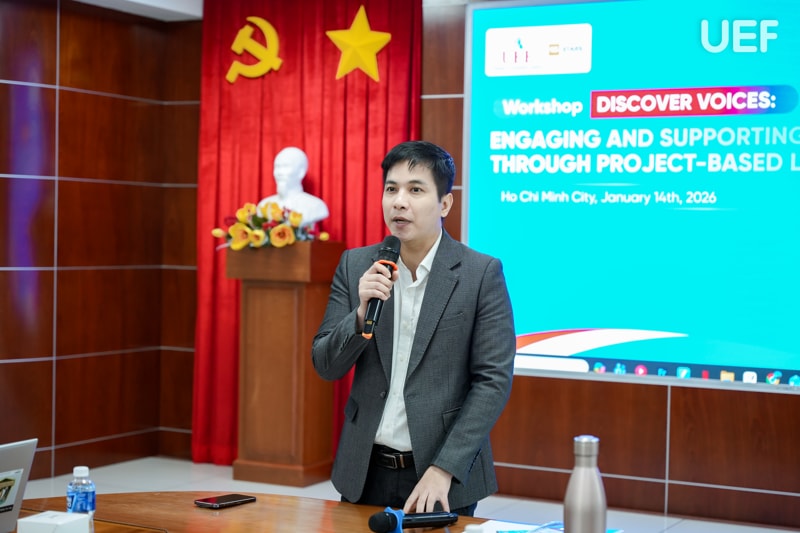 Từ tinh thần đó, sáng ngày 14/01, Khoa Tiếng Anh UEF đã tổ chức workshop chuyên môn “Discover Voices: Engaging and Supporting Students through Project-Based Learning and More”, mang đến những góc nhìn sư phạm hiện đại xoay quanh học tập dựa trên dự án và phát triển năng lực giao tiếp toàn cầu cho đội ngũ giảng viên.