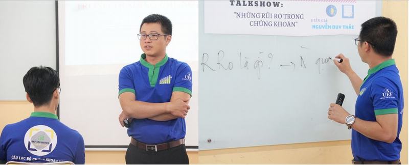 Diễn giả chia sẻ tại chương trình là ThS. Nguyễn Duy Thái – Nguyên Giám đốc Quan hệ khách hàng tại Hội sở Ngân hàng Á Châu và hiện đang là giảng viên khoa Kinh tế UEF. Diễn giả đã dành nhiều thời gian để chia sẻ về những rủi ro, những vấn đề nảy sinh khi đầu tư chứng khoán, làm thế nào để đầu tư chứng khoán an toàn trong thị trường kinh tế Việt Nam hiện nay,…