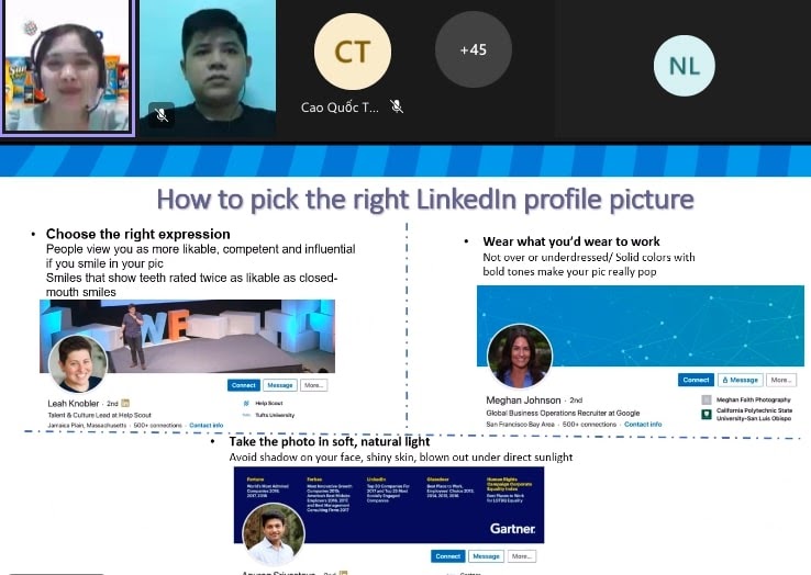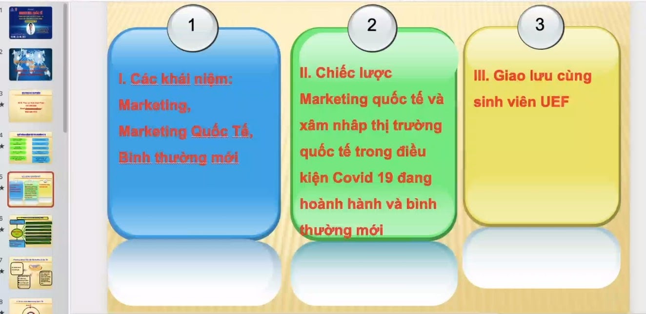 ThS. Lê Vinh Hoài Tịnh - CEO Công ty TNHH World Vision Vietnam - Chủ tịch HĐQT Red Elephant Co, Ltd là diễn giả báo cáo chuyên đề môn Marketing quốc tế. Theo đó, khách mời đã chia sẻ về khái niệm marketing và marketing quốc tế là một công cụ để trợ lực cho doanh nghiệp, tiếp cận thị trường, văn hóa quốc gia, sản phẩm,... nếu muốn thâm nhập vào môi trường mới. Đồng thời, ông Tịnh còn phân tích khái niệm “Bình thường mới”.