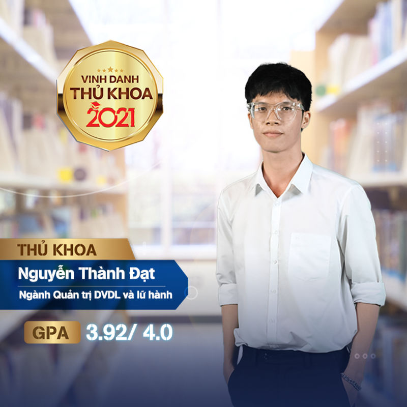Thành Đạt cũng là một cái tên ấn tượng với cộng đồng sinh viên UEF với nhiều thành tích và hoạt động nổi bật như: giải Ba Sinh viên nghiên cứu khoa học cấp trường. Bên cạnh đó, bạn cũng là chủ nhân của Học bổng tài năng liên tiếp 2 năm liền 2018 và 2019, đồng thời là Bí thư đoàn khoa Quản trị du lịch - Khách sạn. Đặc biệt, Đạt còn là Thủ khoa đầu vào và đạt danh hiệu thủ khoa đầu ra của ngành Quản trị dịch vụ du lịch và lữ hành với điểm GPA 3.92/4.00.