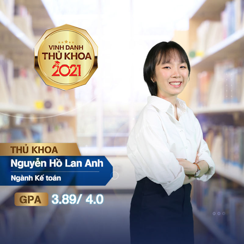 Nguyễn Hồ Lan Anh trở thành tân Thủ khoa ngành Kế toán với điểm GPA 3.89/4.00. Lan Anh được trao Học bổng tài năng năm 2020, đồng thời là thí sinh đạt giải Nhất Olympic Kế toán – Tài chính năm 2020.