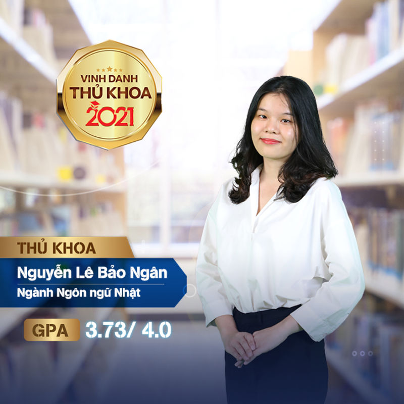Điểm GPA 3.73/4.00 là thành tích đáng nể của tân Thủ khoa ngành Ngôn ngữ Nhật năm 2021. Trước đó vào năm 2018, Bảo Ngân từng xuất sắc đạt năng lực tiếng Nhật - JLPT N2 giành được suất học bổng toàn phần chương trình trao đổi sinh viên với Đại học quốc tế Kobe, một đối tác của UEF.