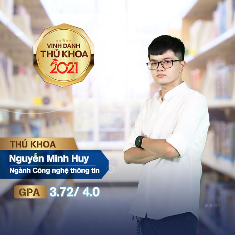 Minh Huy là tân Thủ khoa ngành Công nghệ thông tin với GPA 3.72/4.00. Ngoài những nỗ lực trong học tập chính khóa, Huy còn đạt được những thành tích cao trong các hoạt động học thuật: giải Khuyến khích cuộc thi Olympic Tin học TP.HCM 2018, giải Nhất Sinh viên nghiên cứu khoa học cấp khoa 2020, giải Nhì cuộc thi MOS UEF 2019.