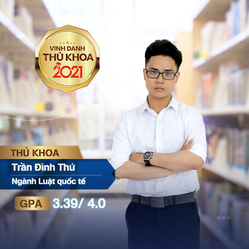 Đạt GPA 3.39/4.00, Đình Thứ đã được gọi tên là Thủ khoa ngành Luật quốc tế của UEF 2021. Tin rằng, Đình Thứ sẽ áp dụng tốt các kiến thức và kĩ năng đã được học tại UEF vào những dự định và định hướng của bản thân trong tương lai.