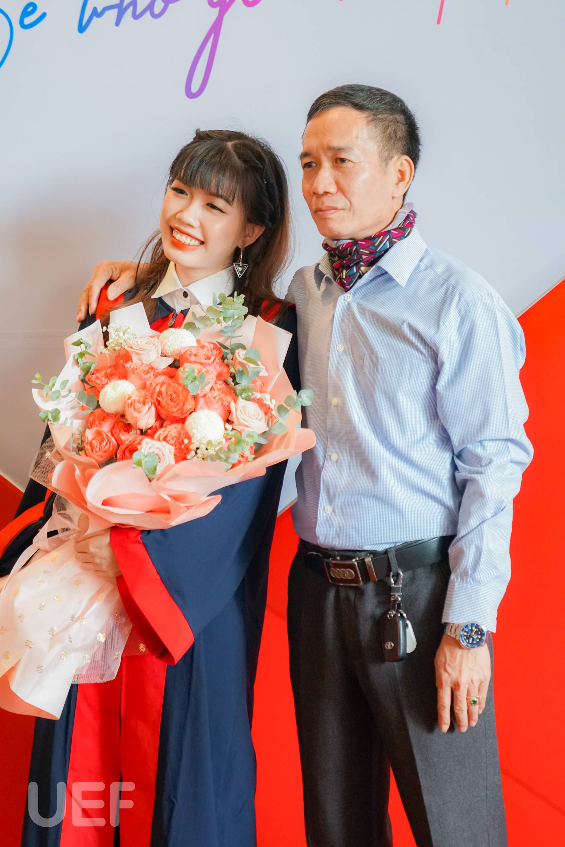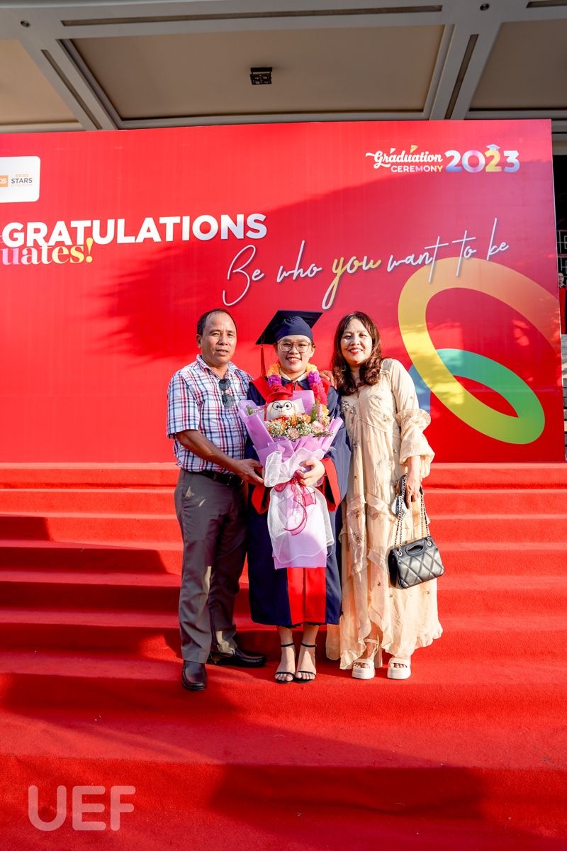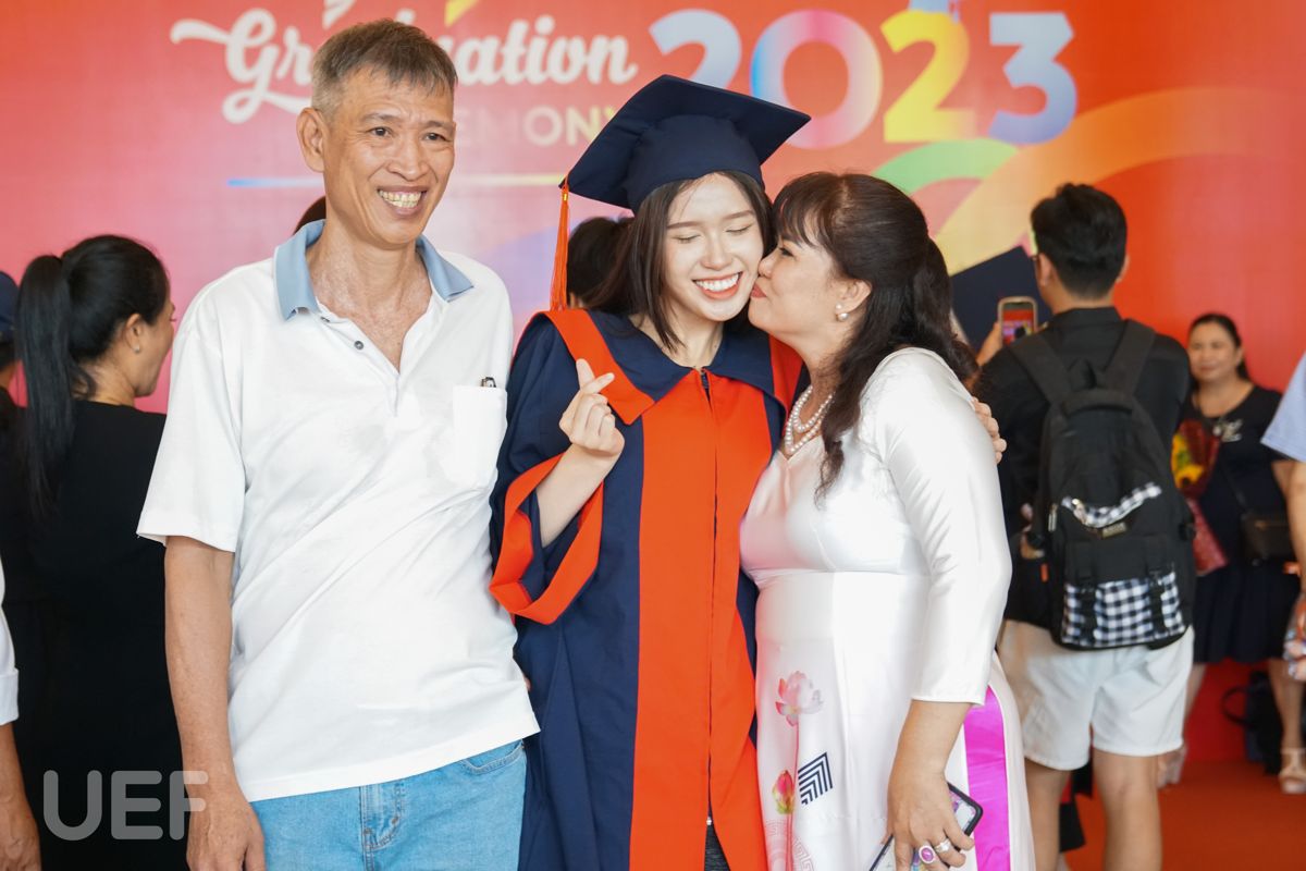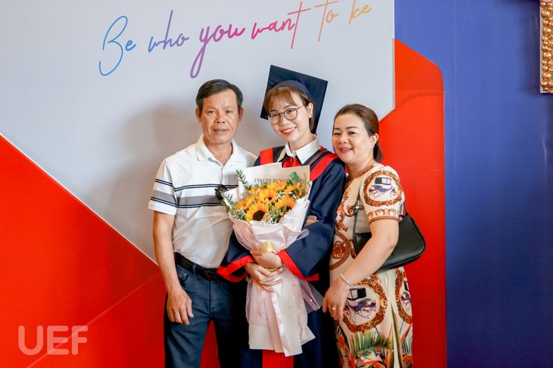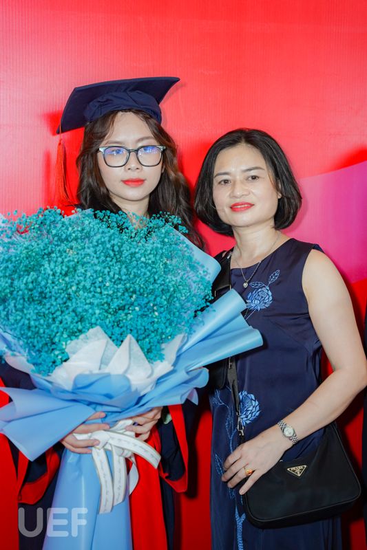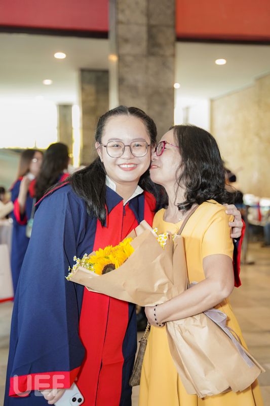 Không thể lột tả hết được niềm vui trong ngày tốt nghiệp của con gái mình, cô Nguyễn Thị Thu Hà - phụ huynh của tân Thủ khoa ngành Ngôn ngữ Anh - Nguyễn Ngọc Nhã Trân đã tâm tình rằng: “Cô có theo dõi liên tục sự kiện tốt nghiệp của trường UEF và thấy mọi thứ rất chỉn chu, hoành tráng. Hôm nay cô rất vui, không có từ ngữ nào diễn tả được niềm vui này. Nhớ lại 4 năm trước, cô đã tìm hiểu rất kỹ mới lựa chọn đưa con gái vào Nhà UEF. Bây giờ cô càng hài lòng với quyết định này. Cô đã từng giới thiệu và sẽ tiếp tục giới thiệu cho cho em của những người quen vào UEF học bởi chất lượng và mọi thứ quá tốt, những gì bỏ ra cô thấy hoàn toàn xứng đáng. Thêm nữa, cô rất biết ơn Nhà trường và thầy cô nơi này”.