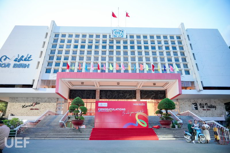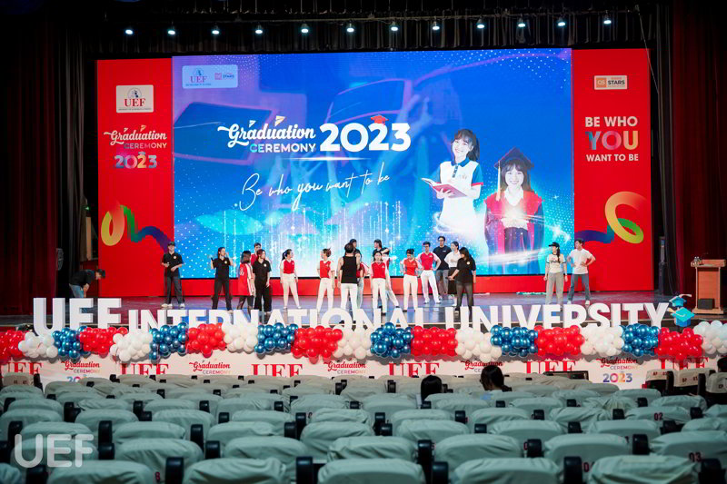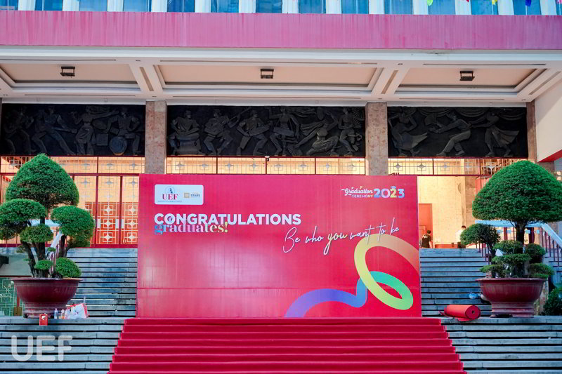 Lễ tốt nghiệp 2023 dành cho sinh viên khóa 2019 và 2020 được tổ chức tại Nhà hát Hòa Bình. Ban tổ chức đã có nhiều buổi làm việc và khảo sát địa điểm này trước khi bắt tay vào công tác chuẩn bị. Cho đến bây giờ, không gian tại nhà hát đã được trang hoàng ở khắp các khu vực cổng, sảnh, sân khấu, ghế ngồi,... Mọi thứ đã sẵn sàng để chào đón các tân khoa cùng gia đình, bạn bè vào ngày mai và Chủ nhật. Sự chuẩn bị chu đáo và hoành tráng này sẽ giúp khoảnh nhận bằng tốt nghiệp của sinh viên Nhà UEF thêm phần ý nghĩa.