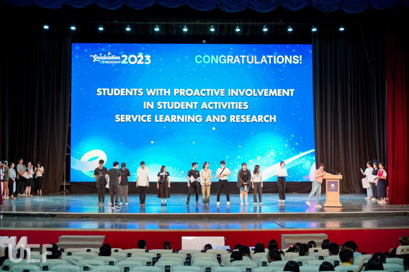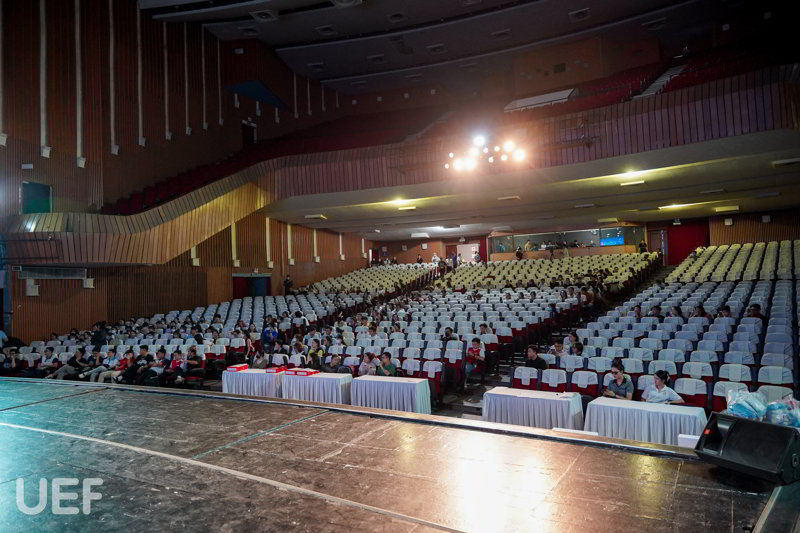 Khu vực sân khấu đủ rộng để hàng nghìn sinh viên UEF cùng nhau xuất hiện rạng rỡ trong bộ lễ phục trang trọng. Khu vực ghế ngồi được bố trí chỉn chu cả dưới và trên tầng cao cho phụ huynh có thể trực tiếp quan sát khoảnh khắc con, em mình được vinh danh đầy tự hào. Các tiết mục văn nghệ được ráo riết luyện tập, hứa hẹn sẽ mang đến không gian âm nhạc bùng nổ, tạo sự cộng hưởng cho buổi lễ thêm thăng hoa và hoành tráng. Các nghi thức khác cũng được chuẩn bị chu đáo và kỹ lưỡng.