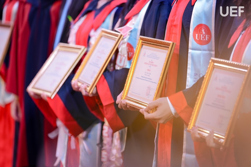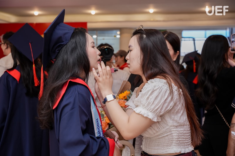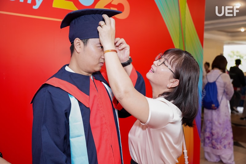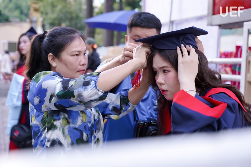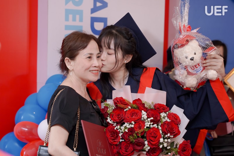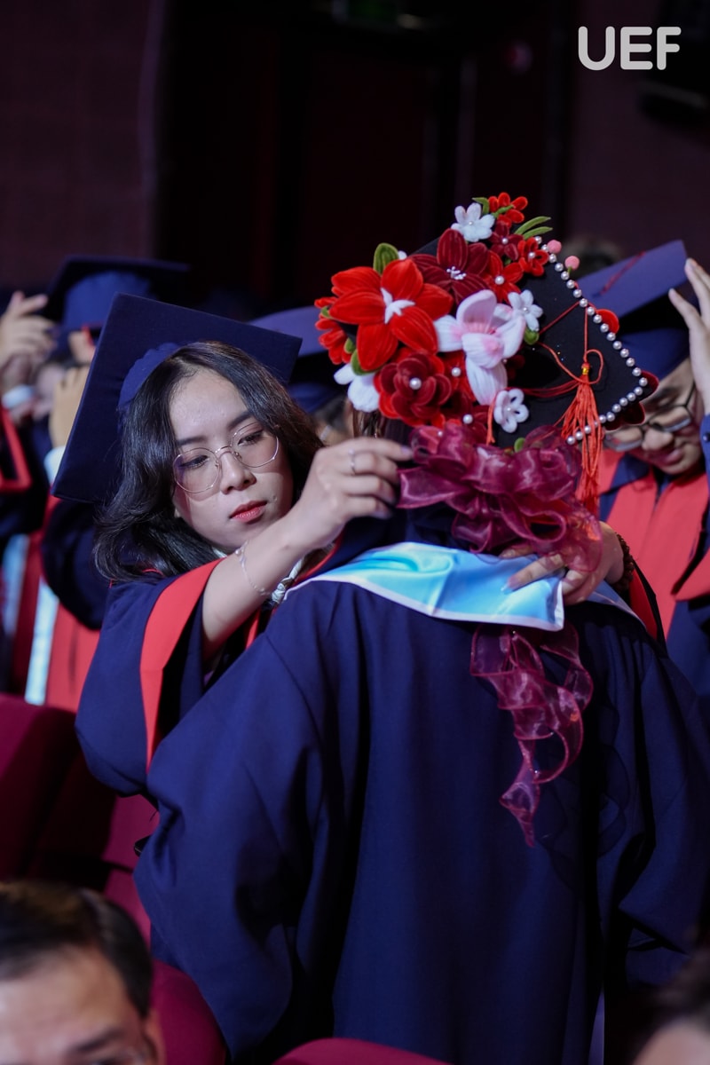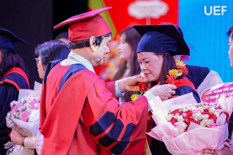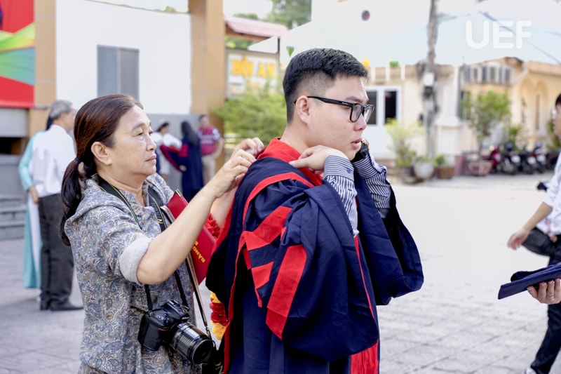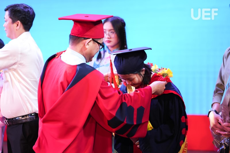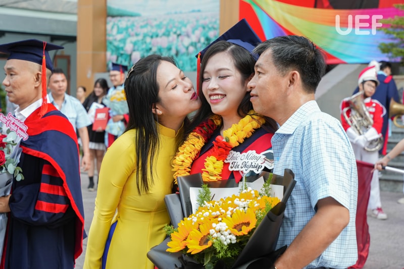 Chắc chắn rằng, mỗi tấm bằng tốt nghiệp không chỉ là thành quả cá nhân mà còn là kết quả của sự hỗ trợ, yêu thương từ gia đình, thầy cô và bạn bè. Trong khoảnh khắc trang trọng ấy, chúng ta có thể thấy được những giọt nước mắt của cha mẹ, những cái siết tay của thầy cô và những cái ôm thân mật của bạn bè. Tất cả đã cùng tạo nên bức tranh thật đẹp, tiếp sức thêm cho những "chiến binh" Nhà UEF tiếp tục vững tin và bước đi hiên ngang trên con đường mình đã chọn. Chính gia đình, thầy cô và bạn bè là những người đã đứng cạnh, đã theo dõi cùng từng bước trưởng thành để rồi hôm nay nhìn thấy người mình yêu thương đứng trên bục vinh danh, chạm đến ước mơ.