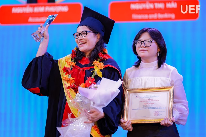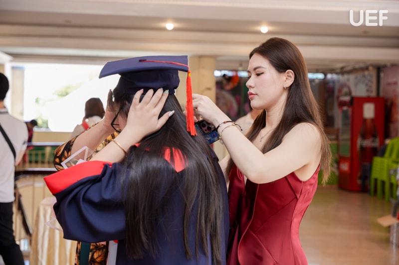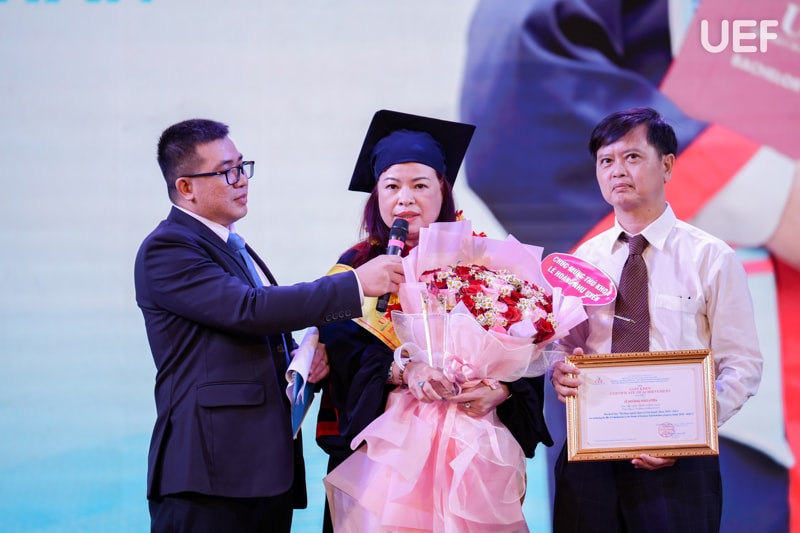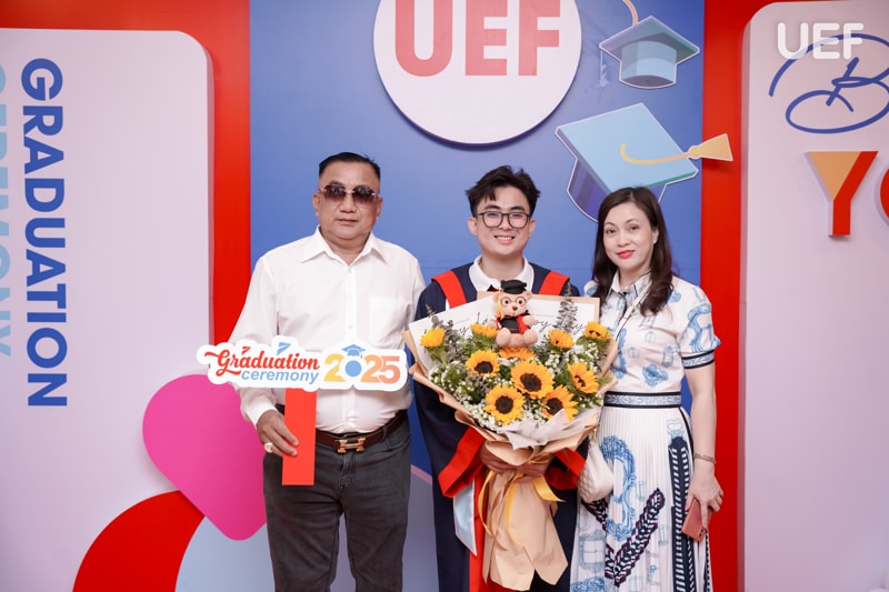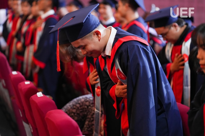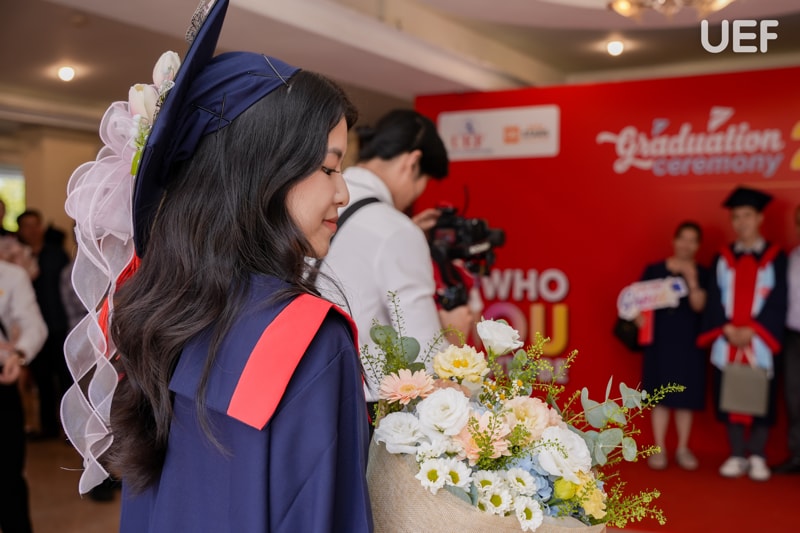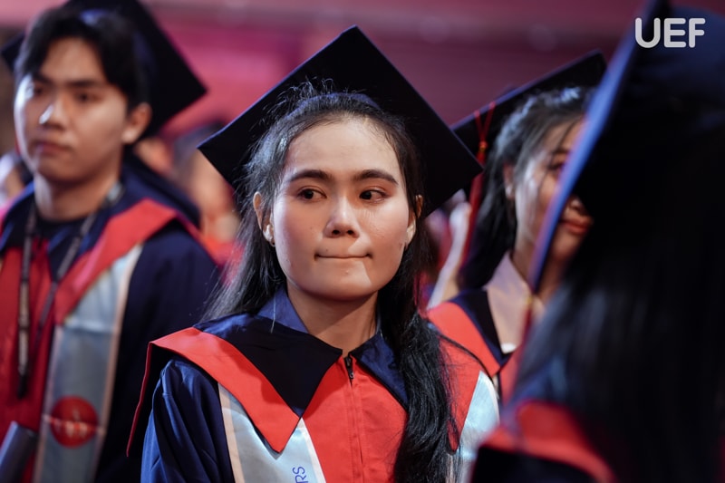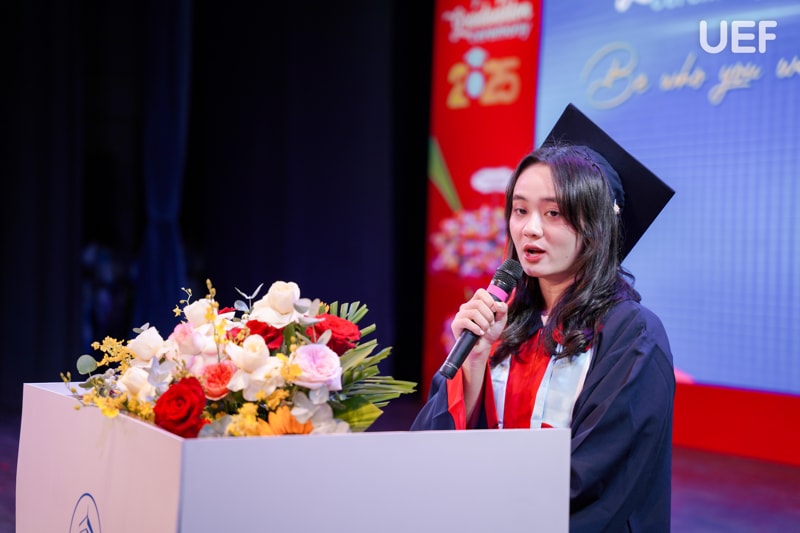 Trong dòng cảm xúc lắng đọng giữa những nụ cười và giọt nước mắt, mỗi sinh viên UEF đã nhìn lại hành trình của mình với niềm tự hào khôn tả. Từng gương mặt hôm nay là minh chứng cho bao nỗ lực, là dấu mốc khép lại thanh xuân rực rỡ và mở ra những chân trời mới. Với những cảm xúc ấy, tân Cử nhân Huỳnh Ngô Mai Lan - ngành Marketing đại diện các tân Cử nhân trong ngày tốt nghiệp cũng nghẹn ngào khi nhắc nhớ hành trình của mình: những ngày không ngừng cố gắng, những giờ phút đầy thử thách để hôm nay, bạn có thể mỉm cười thật rạng rỡ như một lời cảm ơn dành cho bản thân, cho gia đình và cho UEF – nơi đã nuôi dưỡng ước mơ của Mai Lan và nhiều bạn trẻ suốt chặng đường qua