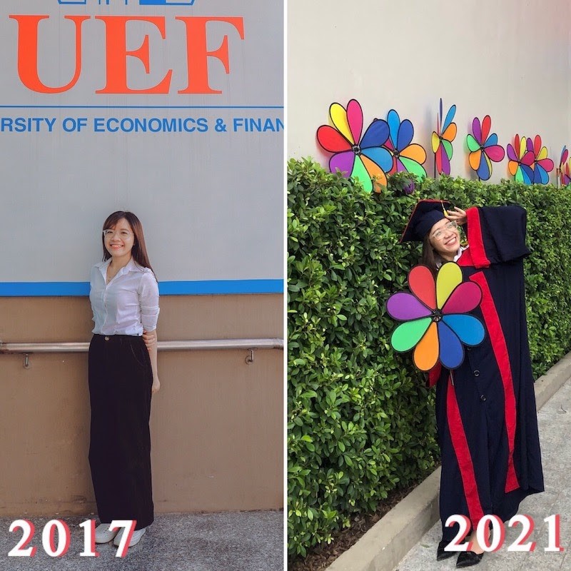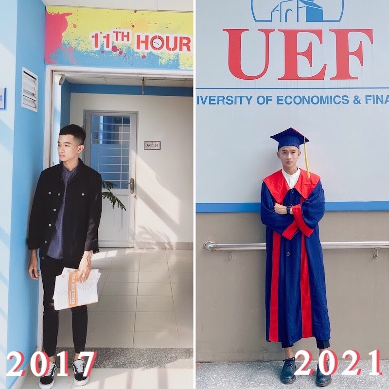 Mới năm nào còn là sinh viên năm nhất ngơ ngác, cậu bạn Nguyễn Tấn Vũ, ngành Kinh doanh quốc tế đã chuẩn bị đứng lên bục nhận tấm bằng Cử nhân. Có thể nhìn thấy rõ ở Tấn Vũ sự thay đổi với gương mặt tự tin và trưởng thành hơn rất nhiều. Tin rằng những điều nhận được ở UEF sẽ là hành trang tuyệt vời giúp bạn bay cao bay xa trong tương lai.
