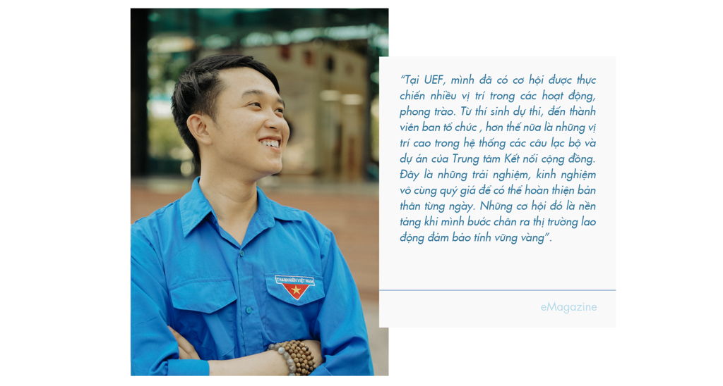 ![]() Ngay từ năm nhất, Thiên Bảo đã rất năng nổ tham gia các hoạt động phong trào cũng như cuộc thi học thuật. Cậu bạn cho rằng đó là nơi để trải nghiệm, học hỏi và phát triển bản thân từng ngày. Vì vậy, Thiên Bảo luôn là gương mặt sinh viên quen thuộc của Nhà UEF khi thường xuyên góp mặt tại đa dạng các sân chơi. Có những cuộc thi, bạn tham gia liên tục 2 mùa và đều gặt hái được nhiều thành tích đáng tự hào. Thiên Bảo còn xuất sắc giữ vững phong độ với danh hiệu Sinh viên 5 tốt ba năm liên tiếp. ![]() Với môi trường học tập năng động, Thiên Bảo đã hòa nhập rất nhanh. Bạn biết tận dụng mọi cơ hội để bản thân được thử sức. Không bàn đến thành tích hay giải thưởng, Thiên Bảo luôn đặt tiêu chí giao lưu học hỏi, mở rộng kết nối cùng các bạn trong và ngoài trường ở mỗi hoạt động mà bạn tham gia. ![]() Để có thể cân bằng được việc học lẫn tham gia các hoạt động, Thiên Bảo đã lựa chọn sử dụng phương pháp “Ma trận Eisenhower”. Bằng việc đo lường mức độ quan trọng của từng đầu việc sau đó phân bổ sự ưu tiên từ cao xuống thấp, bạn có sự sắp xếp hợp lý, kiểm soát tốt thời gian học tập và tham gia hoạt động. ![]() Với Thiên Bảo, “thời gian vàng” để UEFers có thể bắt đầu hành trình phát triển bản thân là ngay từ năm nhất. “Thời điểm này là lúc các bạn định hình tương lai và lựa chọn phương pháp học tập hợp lý, tự do tham gia các hoạt động phong trào để tìm kiếm sự phù hợp cho bản thân. Với sức trẻ năng động, các bạn hãy trải nghiệm hết tất cả những hoạt động của trường tổ chức. Vì đây sẽ là hành trang quý báu để mỗi cá nhân nâng cấp chính mình và cạnh tranh ở tương lai”. ![]() Sau khoảng thời gian tích lũy kiến thức và kinh nghiệm cho bản thân, Thiên Bảo chính thức thực chiến trong môi trường doanh nghiệp. Theo dự kiến, tháng 8/2024, chính thức tốt nghiệp, nhưng ở thời điểm hiện tại, Thiên Bảo đã hoàn thành xong tất cả các học phần và tham gia làm việc tại một số doanh nghiệp. ![]() Để có thể đạt được những thành quả như hiện tại, Thiên Bảo đã trang bị cho bản thân về ngoại ngữ, kiến thức chuyên môn, kiến thức bổ trợ về nhân sự và pháp lý, các kỹ năng mềm như tin học văn phòng, đàm phán, phân tích,... ![]() Tin rằng với sự nỗ lực không ngừng của mình, Thiên Bảo sẽ tiếp tục gặt hái được thành công trong tương lai. Câu chuyện của nam sinh viên năm cuối này cũng đã truyền được một nguồn động lực tích cực cho UEFers khóa dưới, giúp các bạn mạnh dạn hơn, năng động hơn trong các hoạt động khi còn là sinh viên. ![]() |