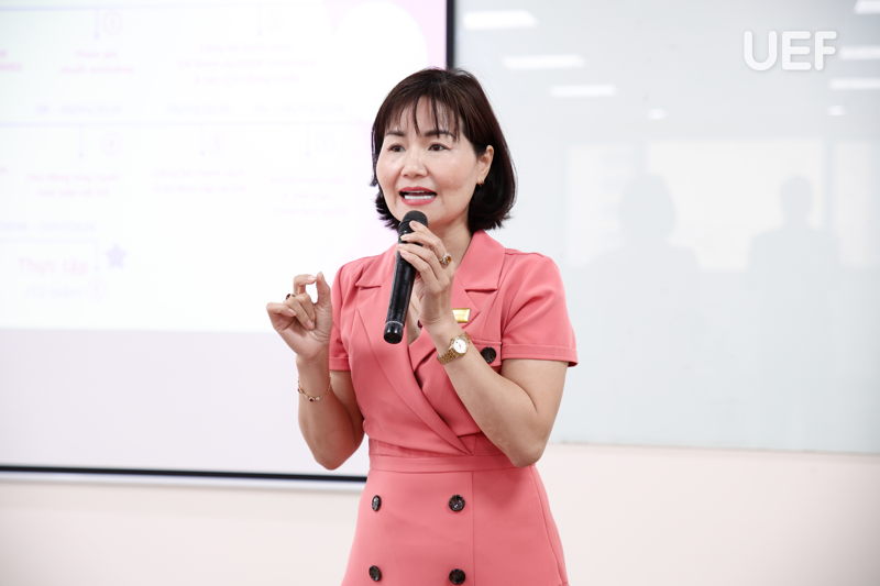 Song song đó, ThS. Nguyễn Thị Kim Loan đã có những sinh hoạt, định hướng cụ thể về kế hoạch thực tập sắp tới, giúp sinh viên nắm rõ các mốc thời gian quan trọng, hồ sơ cần chuẩn bị, quy trình đăng ký thực tập cũng như những lưu ý về hình ảnh, tác phong của sinh viên UEF khi làm việc tại doanh nghiệp.