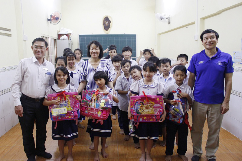Các thầy từ Hội từ thiện UEF tặng quà cho các trẻ
