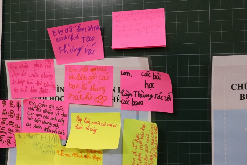 Buổi tổng kết khép lại bằng những lời cảm ơn chân thành. Các trẻ cảm ơn các anh chị sinh viên vì đã dành thời gian quý giá để đồng hành, chia sẻ kiến thức đến các em, cám ơn quý thầy cô đã hỗ trợ. Một trẻ chia sẻ: “Khi được các anh chị hướng dẫn, em hiểu rằng làm việc nhóm rất quan trọng, một mình em thì rất khó có thể hoàn thành công việc nhưng cùng nhau thì chúng em hoàn toàn có thể”.