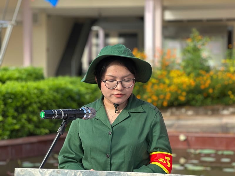 Sáng ngày 29/7, buổi lễ khai giảng học phần này cũng được tổ chức trong không khí nghiêm trang. Đại diện sinh viên, bạn Vũ Thị Ngọc Hà - Đại đội 1 có bài phát biểu thể hiện quyết tâm hoàn thành xuất sắc nhiệm vụ của học phần giáo dục quốc phòng.