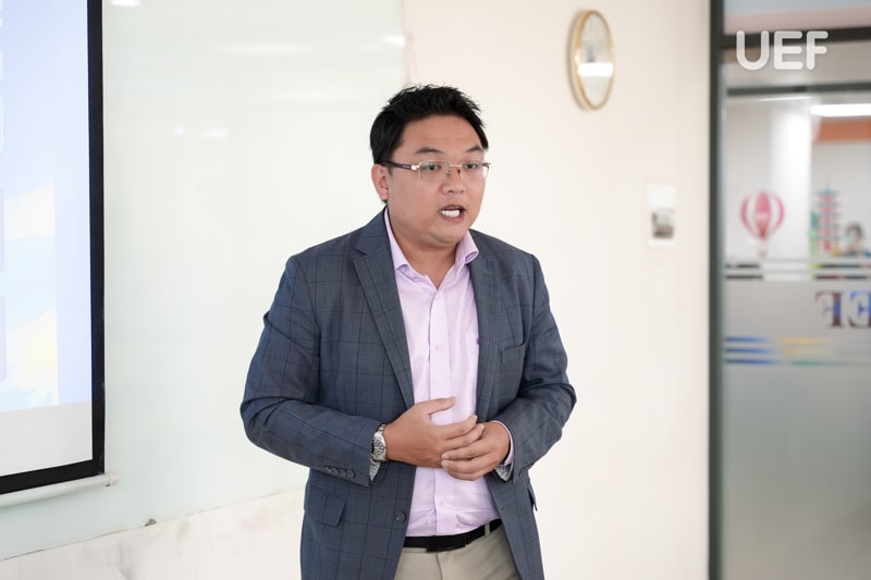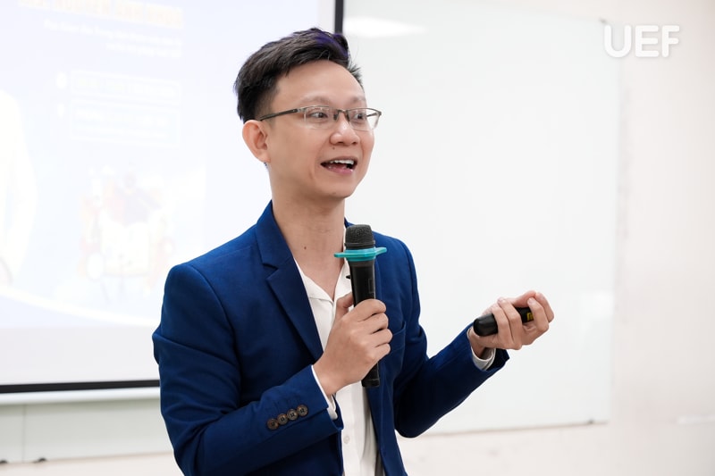 Mở màn chuỗi workshop là chuyên đề đón đầu xu thế công nghệ 4.0 do ThS. Trần Triệu Quân - Phó Trưởng Ban Phát triển nguồn nhân lực Hiệp hội Thương mại điện tử Việt Nam (VECOM), Giảng viên Khoa Quản trị kinh doanh UEF trình bày. Thầy Triệu Quân đã mang đến các kiến thức về cách ứng dụng AI trong học tập gắn với tư duy khởi nghiệp và công dân số. Trong bối cảnh công nghệ đang thay đổi mọi mặt của đời sống và kinh tế, diễn giả nhấn mạnh rằng trí tuệ nhân tạo không còn là khái niệm xa vời mà là công cụ đắc lực mà thế hệ trẻ cần phải làm chủ.