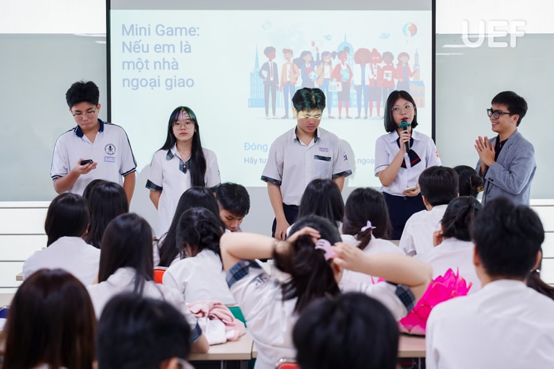 Điểm đặc biệt của sự kiện là việc lồng ghép các minigame tương tác đầy thú vị. Hình thức này khuyến khích học sinh chủ động khám phá ngành nghề trước khi được chuyên gia “giải mã”, giúp các bạn trẻ hiểu sâu và hình thành tư duy đa chiều. Việc tương tác cũng giúp diễn giả nắm bắt được suy nghĩ và vấn đề mà học sinh đang quan tâm, tạo nên không gian chia sẻ, trao đổi hiệu quả.