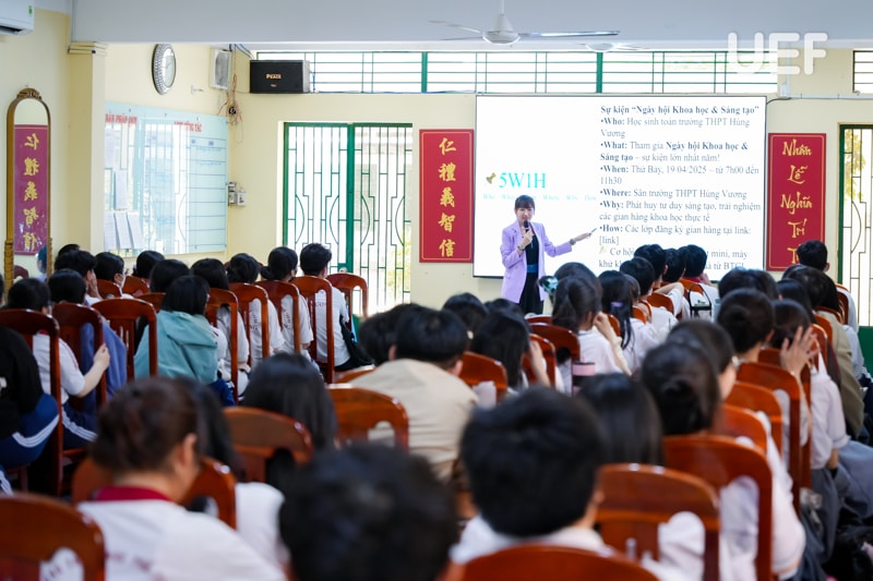 Với mục tiêu trang bị những kỹ năng thiết yếu cho hành trình khởi nghiệp trong tương lai của học sinh, ngày 16/4 vừa qua, Trường THPT Hùng Vương đã phối hợp với Khoa Marketing UEF tổ chức chuyên đề kỹ năng “Viết content truyền thông” đầy thiết thực. Buổi tập huấn này nằm trong chuỗi hoạt động hỗ trợ học sinh THPT Hùng Vương tham gia cuộc thi Ý tưởng khởi nghiệp và ngày hội Khởi nghiệp “Hùng Vương Shark Tank” năm 2025, hứa hẹn khơi dậy tiềm năng sáng tạo và trang bị cho các bạn khả năng truyền tải ý tưởng một cách hiệu quả.