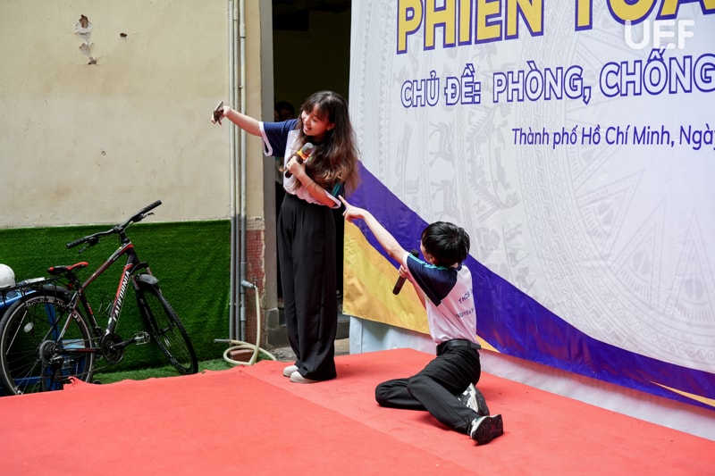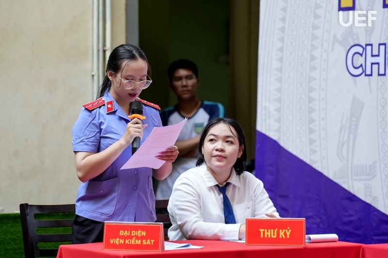 Phiên tòa giả định được xây dựng chỉn chu, mô phỏng một vụ án hình sự với đầy đủ vai trò trong tố tụng như thẩm phán, luật sư, kiểm sát viên, thư ký, bị cáo... do chính các bạn sinh viên Khoa Luật UEF đảm nhiệm. Mỗi nhân vật góp phần làm rõ từng vị trí công việc trong lĩnh vực pháp lý.