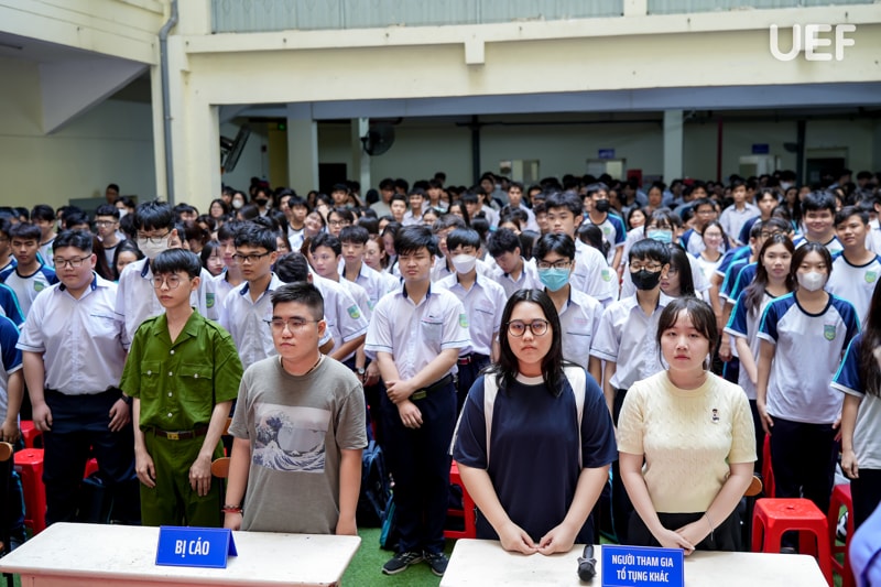 Không chỉ là hoạt động phổ biến pháp luật và giúp sinh viên Nhà trường hiểu về thực tế nghề nghiệp, phiên tòa còn mở ra cơ hội để học sinh lớp 12 tiếp cận sâu sắc hơn với nhóm ngành Luật – một trong những nhóm ngành nhiều tiềm năng đang được đào tạo tại UEF.