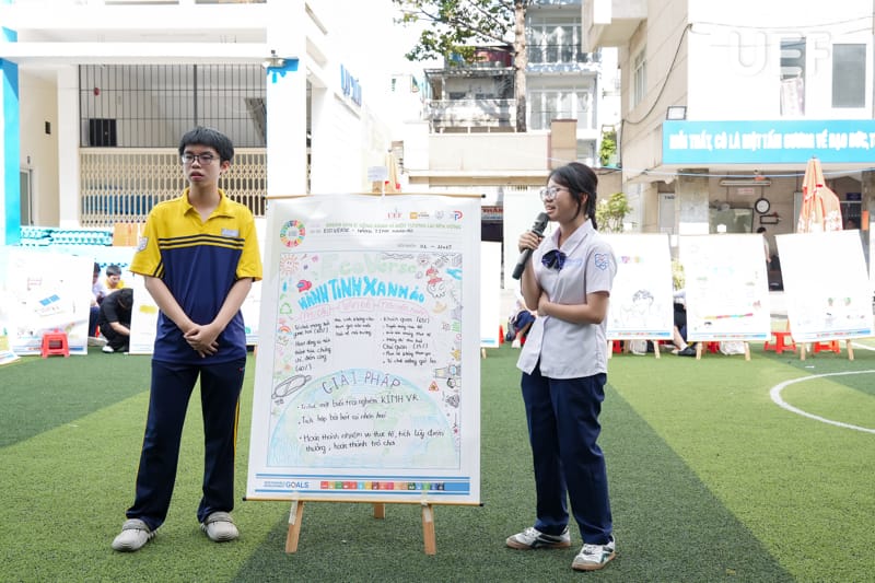 Mỗi poster là một thông điệp xanh, thể hiện góc nhìn mới mẻ của học sinh về môi trường, năng lượng tái tạo, bảo tồn tài nguyên và thay đổi hành vi tiêu dùng. Các phần “pitching” không chỉ thể hiện kỹ năng thuyết trình mà còn cho thấy năng lực giải quyết vấn đề thực tế và tư duy đổi mới sáng tạo của thế hệ Gen Z.