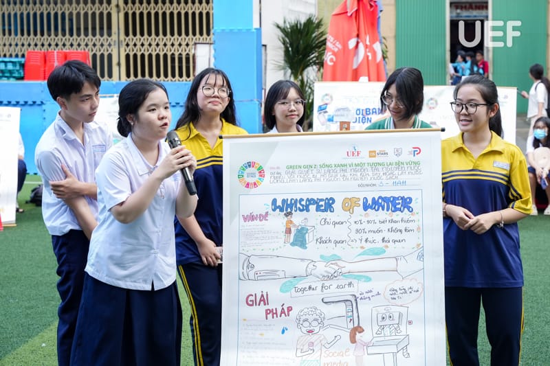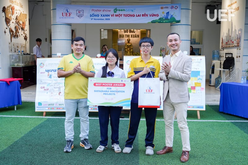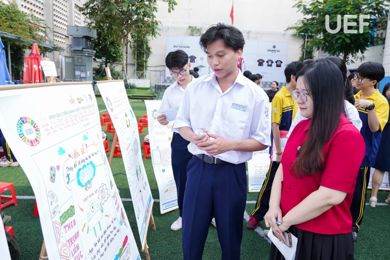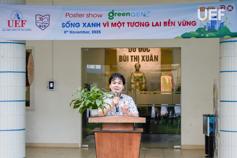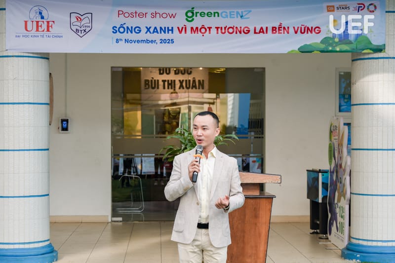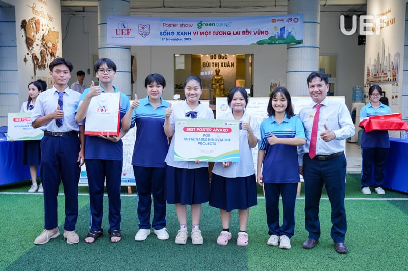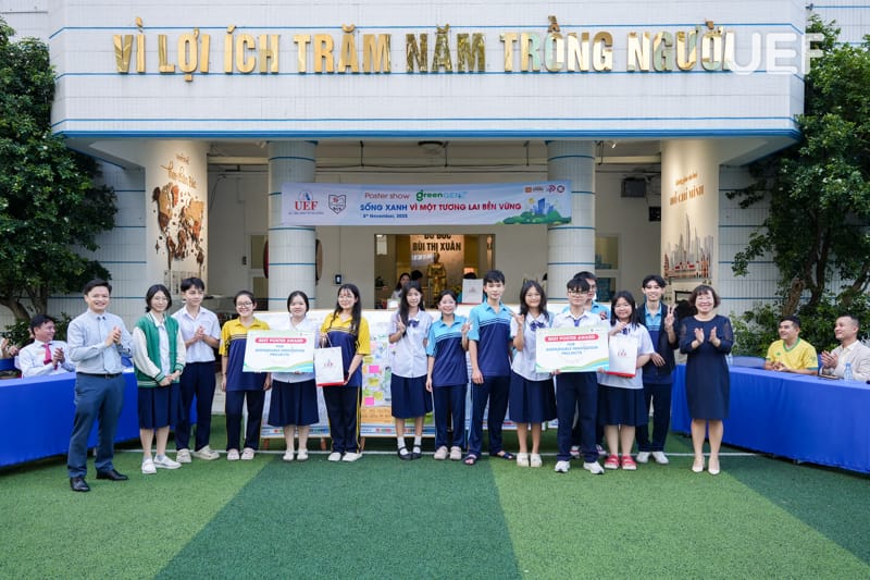 Sáng ngày 8/11, chương trình Poster show “GreenGenZ: Sống xanh vì một tương lai bền vững” đã diễn ra sôi nổi trong khuôn khổ khóa học “Công dân toàn cầu” do UEF phối hợp với trường THPT Bùi Thị Xuân tổ chức.