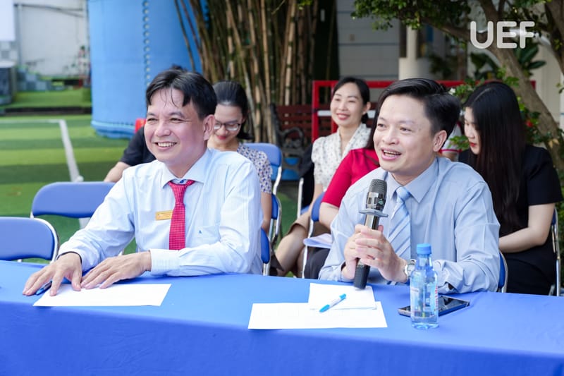 Đại diện UEF tham dự chương trình có TS. Phan Bảo Giang - Phó Hiệu trưởng, Trưởng khoa Marketing, ThS. Lê Dũng - Trưởng Phòng Đào tạo, ThS. Nguyễn Xuân Hưng - Giám đốc Trung tâm Đào tạo thiết kế dự án, ThS. Hà Lê Thu Hoài - Phó Giám đốc Trung tâm Đào tạo thiết kế dự án, cùng các giảng viên phụ trách lớp học.
