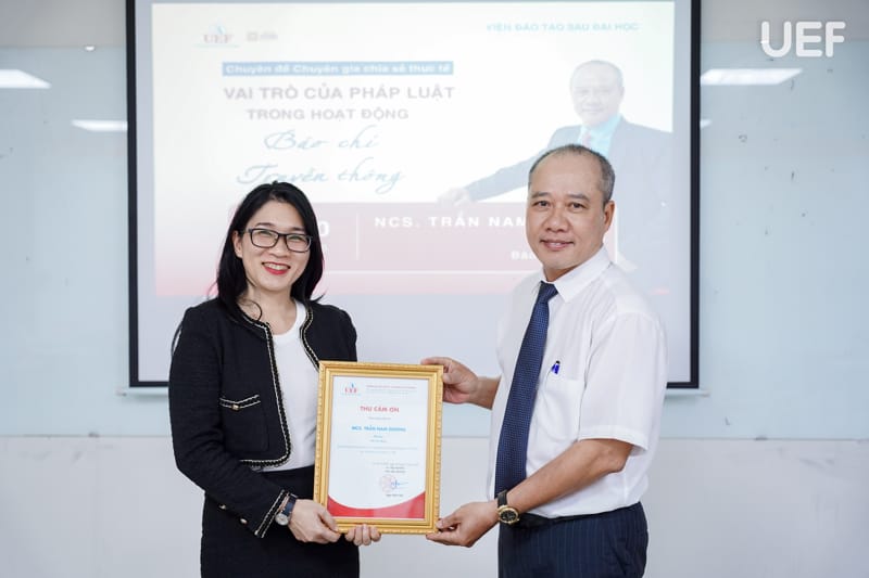 Nhằm nâng cao kiến thức và kỹ năng thực tiễn về pháp luật trong lĩnh vực báo chí và truyền thông, tối ngày 5/1, Viện Đào tạo sau đại học UEF đã tổ chức chuyên đề “Vai trò của pháp luật trong hoạt động báo chí truyền thông”, dành riêng cho học viên cao học ngành Quan hệ công chúng.