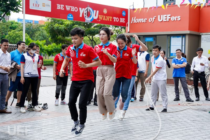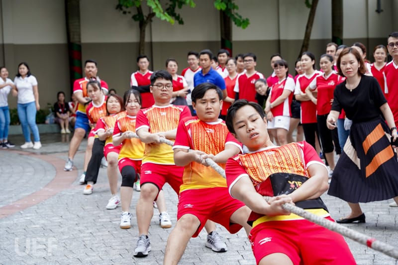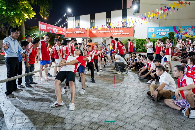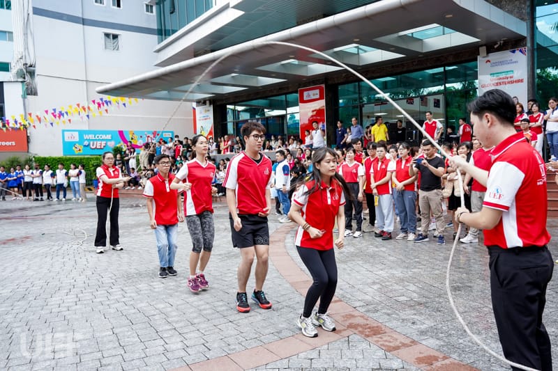 Được tiếp thêm sức mạnh từ không khí sôi động, náo nhiệt từ phía các cổ động viên, những “người lái đò” Nhà UEF càng dốc sức cháy hết mình với các thử thách như nhảy dây, kéo co và thử thách liên hoàn. Không đòi hỏi quá cao về kỹ thuật, cả ba bộ môn lại đều đề cao sức bền thể lực, tinh thần đồng đội lẫn sự hợp tác ăn ý của các “vận động viên”.
