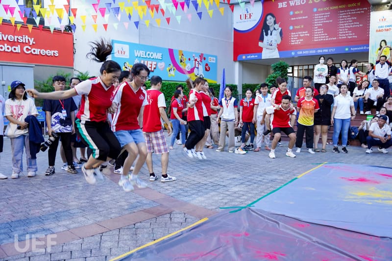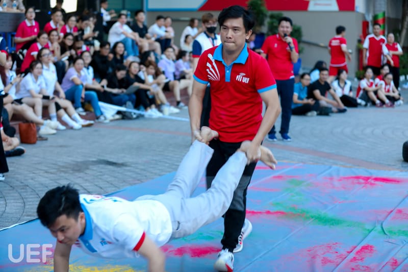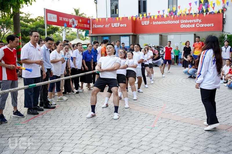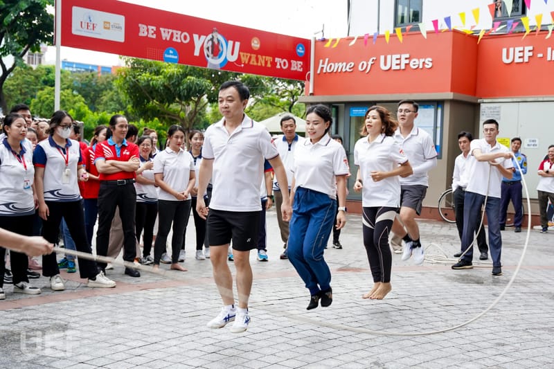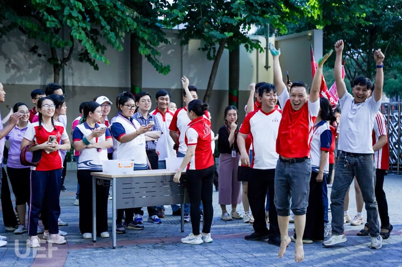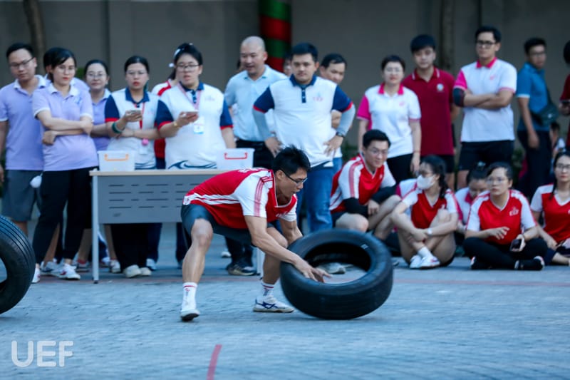Được biết đến qua những “profile khủng” về thành tích học tập, nghiên cứu, kinh nghiệm giảng dạy phong phú cùng vẻ bề ngoài nghiêm túc khi đứng lớp, làm việc, các thầy cô UEF còn khiến nhiều sinh viên phải “trầm trồ ngạc nhiên” khi chứng kiến những khoảnh khắc hiếm có, chịu chơi, “bất chấp hình tượng” tại hội thao năm nay.