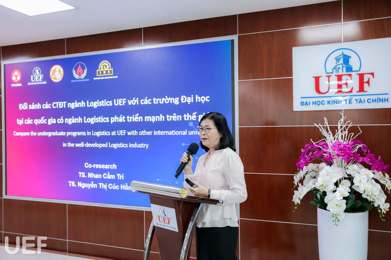 Đại diện UEF trình bày báo cáo “Đối sánh các chương trình đào tạo ngành Logistics UEF với các trường đại học tại các quốc gia có ngành Logistics phát triển mạnh trên thế giới”