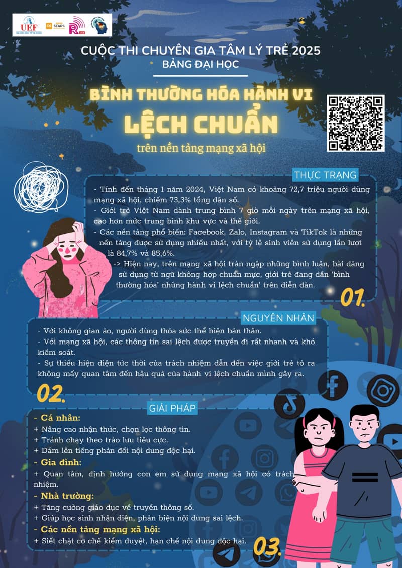 Sau thời gian phát động cuộc thi “Chuyên gia tâm lý trẻ 2025”, Ban tổ chức đã nhận hơn 40 đề tài dự thi từ các nhóm thí sinh của hai bảng Đại học và THCS-THPT. Từ ngày 10/2, vòng bình chọn online đã diễn ra với sự “trình làng” ấn tượng của các đề tài.