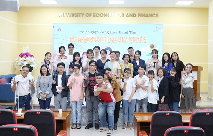 Sáng 30/12, hơn 200 bạn sinh viên UEF đã tham dự buổi chia sẻ “Hormone hạnh phúc” do tổ chức Ruy Băng Tím kết hợp với Trung tâm Kết nối cộng đồng UEF tổ chức.