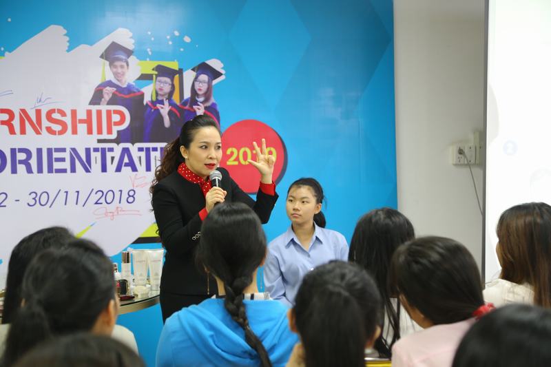 Chị Nguyễn Thị Thu Hồng đến từ bộ phận đào tạo của thương hiệu Provence chia sẻ bí kíp làm đẹp cùng sinh viên UEF