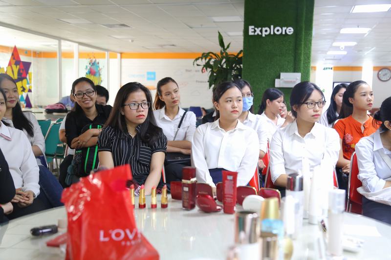 Nữ sinh UEF chăm chú lắng nghe những kiến thức làm đẹp từ diễn giả
