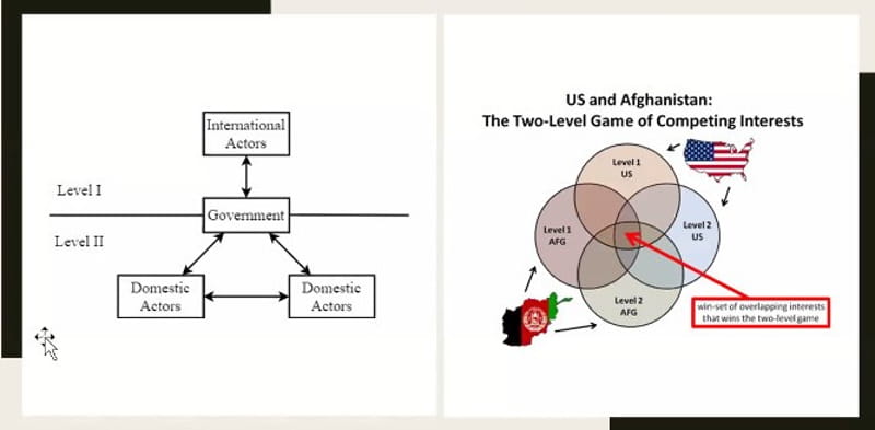 Khách mời cũng đã giới thiệu đến các bạn sinh viên bộ công cụ phân tích chính sách Đối ngoại của quốc gia - đó là 3 cấp độ phân tích trong quan hệ quốc tế: thứ nhất, cấp độ cá nhân, cấp độ quốc gia, cấp độ hệ thống quốc tế.