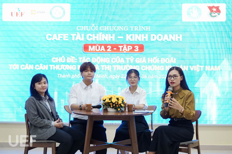 Tiếp tục lên sóng số thứ ba vào chiều ngày 22/6, chương trình Cafe Tài chính - Kinh doanh mùa hai của Khoa Tài chính - Kế toán đã mang đến cho sinh viên nhiều góc nhìn mới với chủ đề thú vị - “Tác động của tỷ giá hối đoái tới cán cân thương mại và thị trường chứng khoán Việt Nam”.
