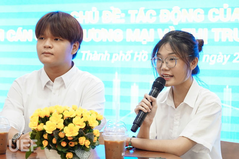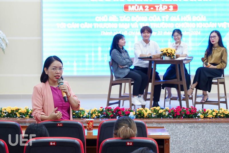 Bằng việc phân tích mối quan hệ của tỷ giá hối đoái và thị trường chứng khoán, khách mời đã đưa ra được lời khuyên cho sinh viên “thời điểm vàng” để đầu tư. Là nhà đầu tư sáng suốt cũng cần cân nhắc kỹ càng vào mã cổ phiếu của doanh nghiệp để hạn chế được rủi ro. Với những bài học tích lũy được cộng thêm sự hiểu biết qua việc nghiên cứu của bản thân, các diễn giả đề xuất thêm nhiều cách để giảm biến động tỷ giá cho doanh nghiệp và cả những biện pháp cần thiết nếu vấn đề này có sự biến động mạnh mẽ và bất ngờ.