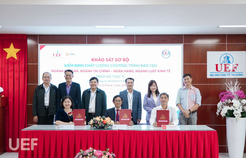 Kết thúc buổi làm việc, UEF, Đoàn đánh giá ngoài và CEA VNU-HCM đã tiến hành ký kết biên bản khảo sát sơ bộ kiểm định chất lượng chương trình đào tạo trình độ thạc sĩ các ngành Kế toán, Tài chính - Ngân hàng và Luật kinh tế.