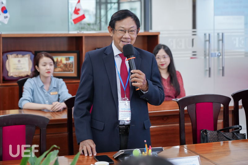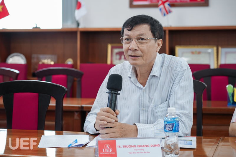 Về phía UEF có sự tham dự của TS. Nguyễn Thanh Giang - Hiệu trưởng Nhà trường, TS. Ngô Minh Hải - Phó Hiệu trưởng Nhà trường, TS. Lý Thiên Trang - Giám đốc Bảo đảm và Kiểm định chất lượng, TS. Lê Vũ Hương Giang - Giám đốc Trung tâm Bảo đảm chất lượng, TS. Trương Quang Dũng - Viện trưởng Viện Đào tạo sau đại học, ThS. Nguyễn Phạm Hải Hà - Phó Viện trưởng Viện Đào tạo sau đại học và các thầy cô là đại diện lãnh đạo, giảng viên, nhân viên Trường.