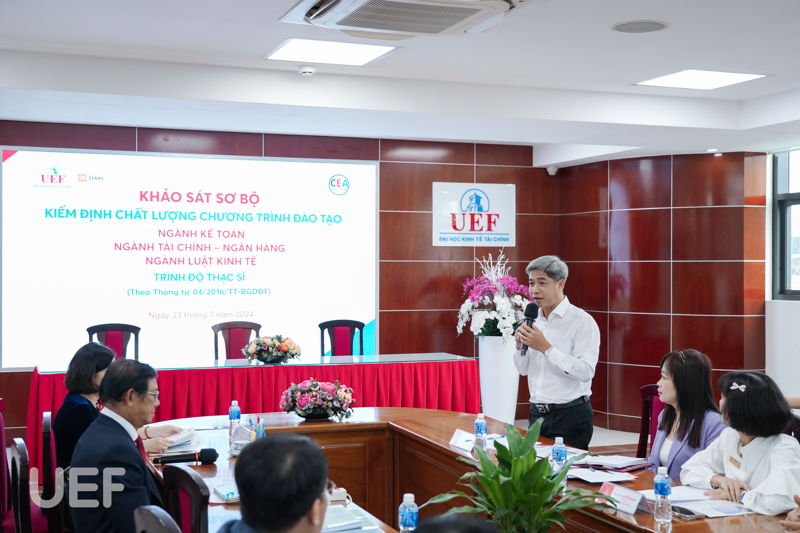 Sáng ngày 23/7, UEF đã tiếp đón và có phiên làm việc với Đoàn chuyên gia đánh giá ngoài thuộc Trung tâm Kiểm định chất lượng giáo dục, ĐHQG-HCM (CEA VNU-HCM). Đây là hoạt động trong khuôn khổ chương trình khảo sát sơ bộ kiểm định chất lượng chương trình đào tạo ngành Kế toán, ngành Tài chính - Ngân hàng và ngành Luật kinh tế trình độ thạc sĩ.