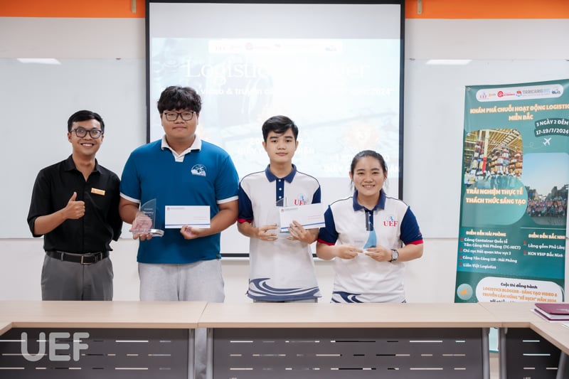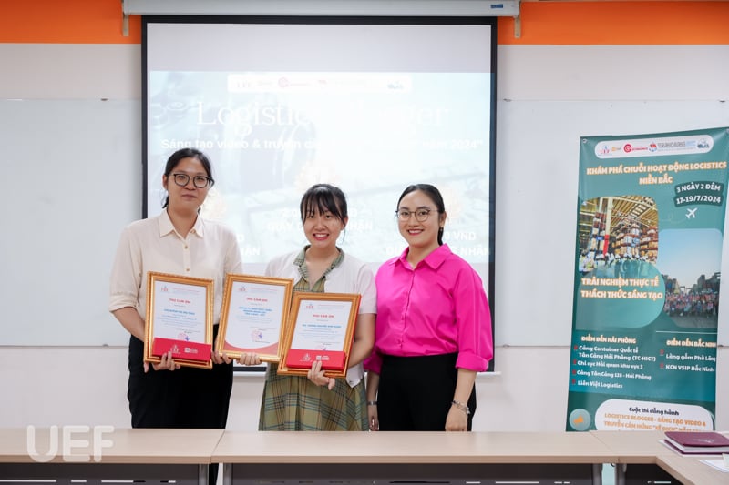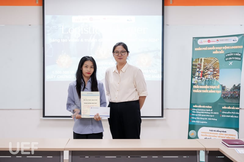 Cũng trong buổi tổng kết, Khoa Kinh tế đã tiến hành trao giải thưởng và cấp giấy chứng nhận cho những tác phẩm ấn tượng của cuộc thi Logistics Blogger - Sáng tạo video và truyền cảm hứng “xê dịch” năm 2024. Nằm trong khuôn khổ chương trình “Khám phá chuỗi hoạt động logistics miền Bắc”, sân chơi được triển khai với mục tiêu giúp các bạn sinh viên thử tài sáng tạo và khẳng định vốn kiến thức của mình trong lĩnh vực Logistics. Từ những chất liệu mới mẻ và thú vị được tích lũy tại hai vùng đất mới, các bạn đã tạo ra các video đầy sinh động. Không chỉ thể hiện được trọn vẹn nội dung trong chuyến đi mà các tác phẩm còn thành công nói lên quan điểm của mỗi cá nhân về những vấn đề xoay quanh lĩnh vực mà mình đang theo đuổi là Logistics.