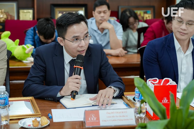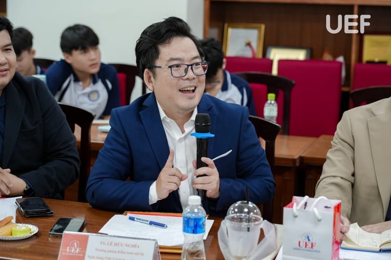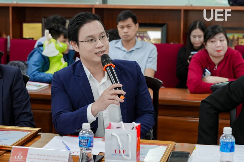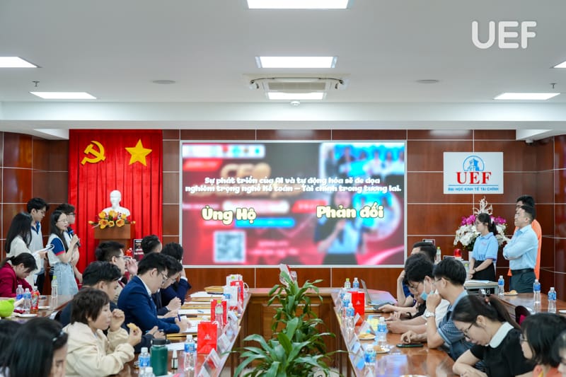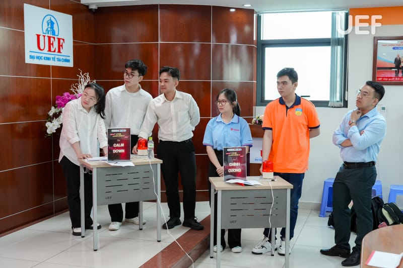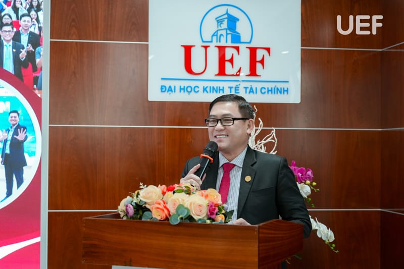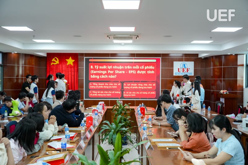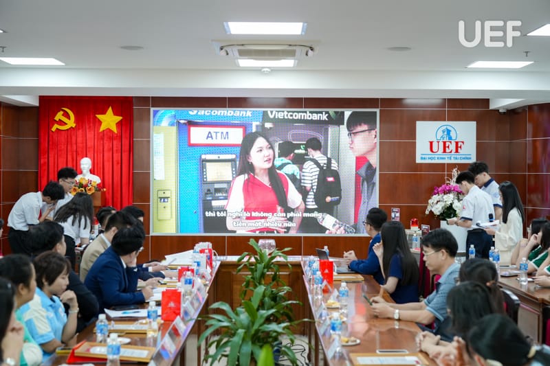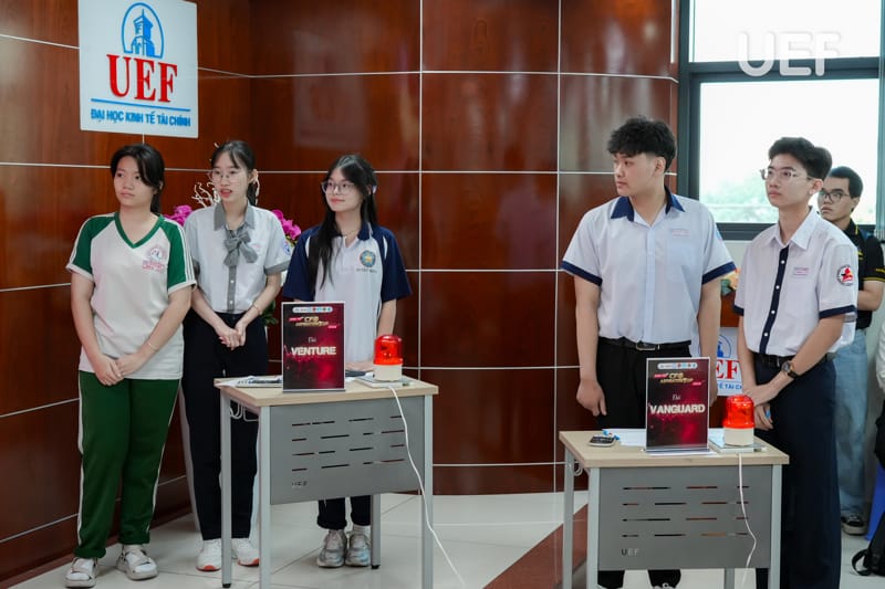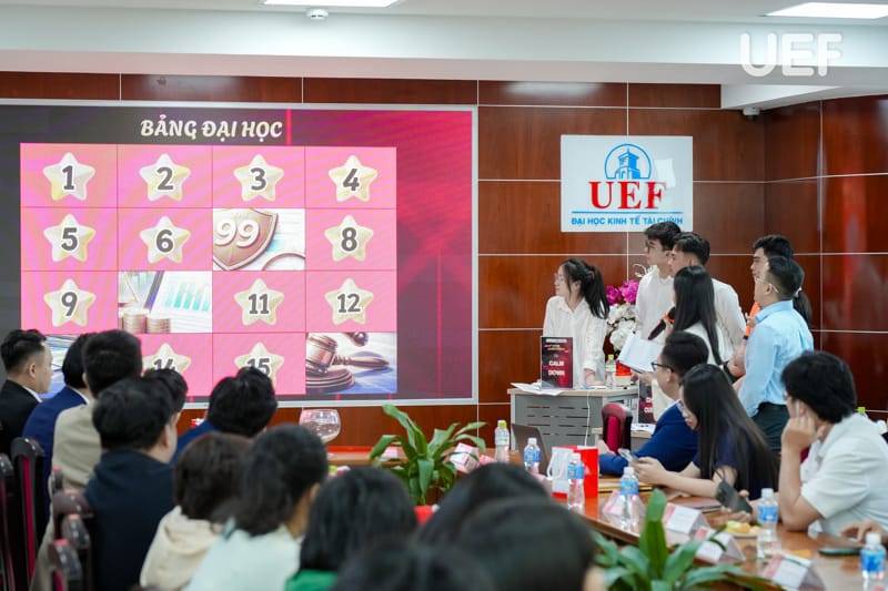 Vòng Chung kết có sự tham dự của TS. Nhan Cẩm Trí - Phó Hiệu trưởng UEF, ThS. Nguyễn Thanh Lâm - Phó Trưởng khoa Tài chính - Kế toán, đại diện các doanh nghiệp cùng thầy cô từ các trường THPT và đại học.