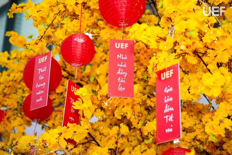 Những ngày cận Tết Nguyên Đán 2026, khuôn viên UEF dường như chậm lại một nhịp để đón mùa Xuân mới. Sắc vàng của mai, sắc hồng của đào, những góc trang trí mang đậm hơi thở Tết truyền thống đã phủ khắp các không gian quen thuộc, mang đến cảm giác ấm áp, rộn ràng giữa nhịp sống giảng đường năng động.