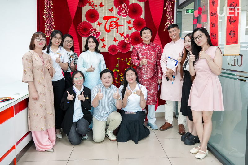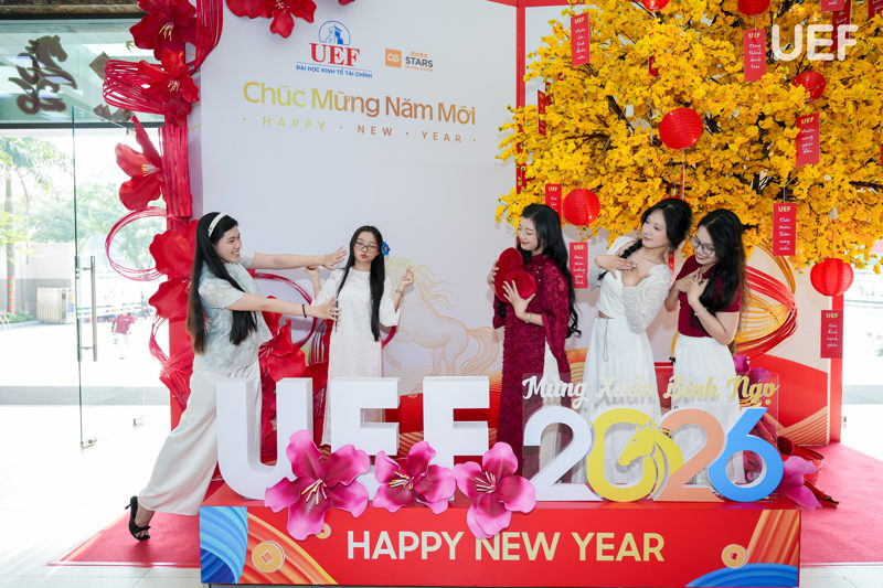 Không khí Xuân tại UEF còn lan tỏa qua những hoạt động chào năm mới rộn ràng. Tiếng cười, những bức ảnh check-in lưu giữ khoảnh khắc, những lời chúc đầu năm được trao gửi đã góp phần tạo nên một bức tranh Tết sinh động, nơi mỗi thành viên đều cảm nhận rõ sự gắn kết và sẻ chia.