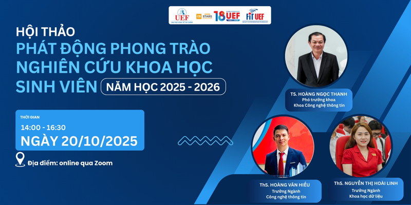Chiều ngày 20/10, Khoa Công nghệ thông tin UEF (FIT) đã tổ chức thành công Hội thảo phát động phong trào Nghiên cứu khoa học sinh viên năm học 2025 - 2026 theo hình thức trực tuyến. Chương trình có sự tham gia của lãnh đạo Khoa, các thầy cô là Trưởng ngành, giảng viên cùng đông đảo các bạn sinh viên, mở ra một mùa nghiên cứu mới với nhiều kỳ vọng và cảm hứng học thuật.