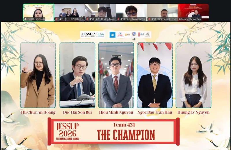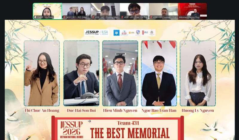 Khoa Luật đăng cai tổ chức vòng Quốc gia Jessup 2026, đội UEF ghi dấu ấn tại hạng mục viết luận cứ