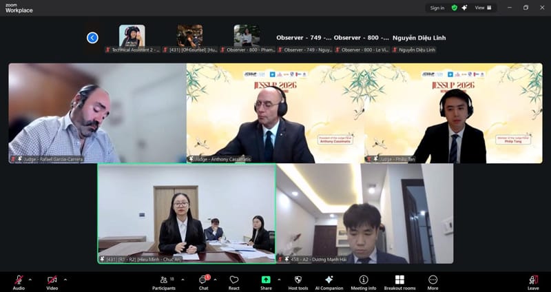 Đáng chú ý, các phiên tranh tụng được chấm điểm bởi đội ngũ giám khảo quốc tế gồm các giáo sư, luật sư, trọng tài viên đến từ 12 quốc gia như Hoa Kỳ, Australia, Canada, Ấn Độ, Trung Quốc, Malaysia, Philippines, Mexico… thông qua hệ thống chấm điểm minh bạch của ILSA.