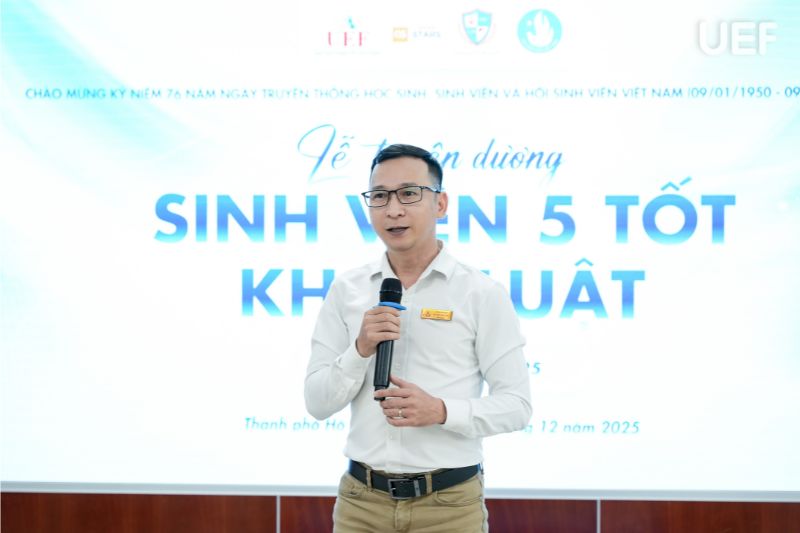 Khép lại buổi lễ, tinh thần Sinh viên 5 tốt tiếp tục được lan tỏa như một ngọn lửa truyền cảm hứng, thúc đẩy sinh viên Khoa Luật không ngừng học hỏi, rèn luyện và cống hiến. Tin rằng, từ những nền tảng vững chắc hôm nay, các bạn sinh viên sẽ tiếp tục phát huy bản lĩnh, trí tuệ và trách nhiệm xã hội, góp phần xây dựng hình ảnh sinh viên UEF nói chung và sinh viên Khoa Luật nói riêng ngày càng bản lĩnh, hội nhập và đóng góp nhiều giá trị cho cộng đồng.